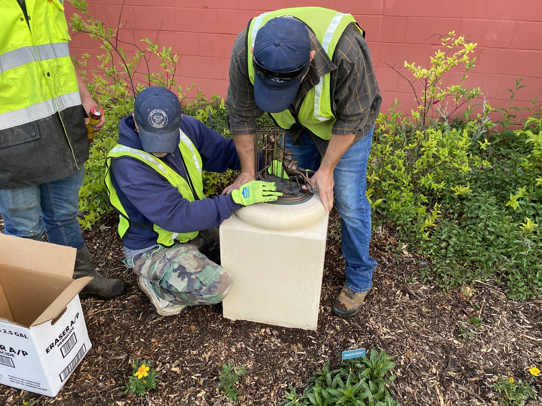 “The Conway Department of Public Works spent the morning [April 19, 2023] installing the world famous Tiny Toads throughout downtown.