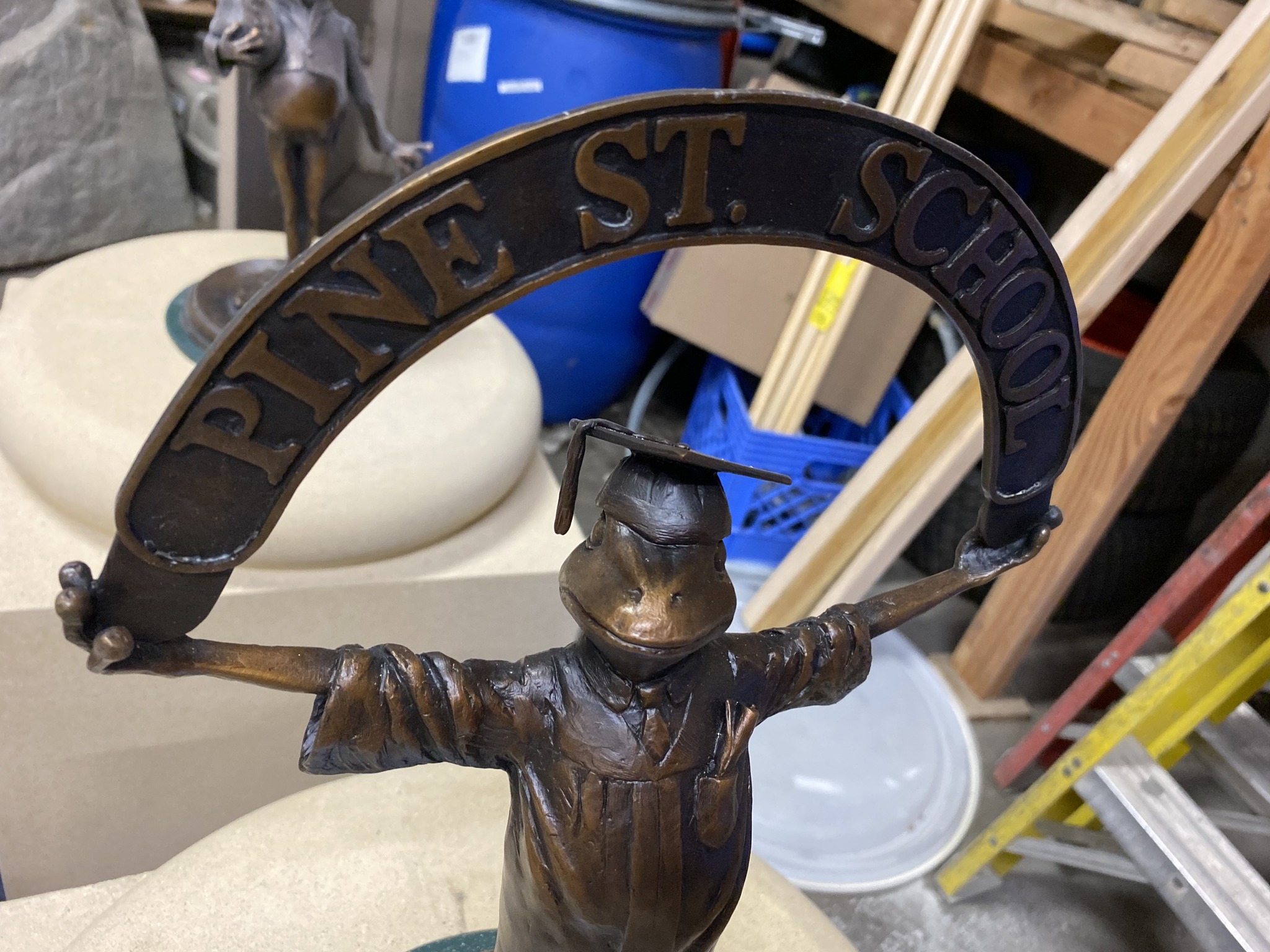 The hard working young student toad with his diploma in his pocket is proud to graduate from the Pine Street School.
